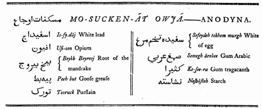Materia Medica in Arabic & Persian, Shirazy, 1793
