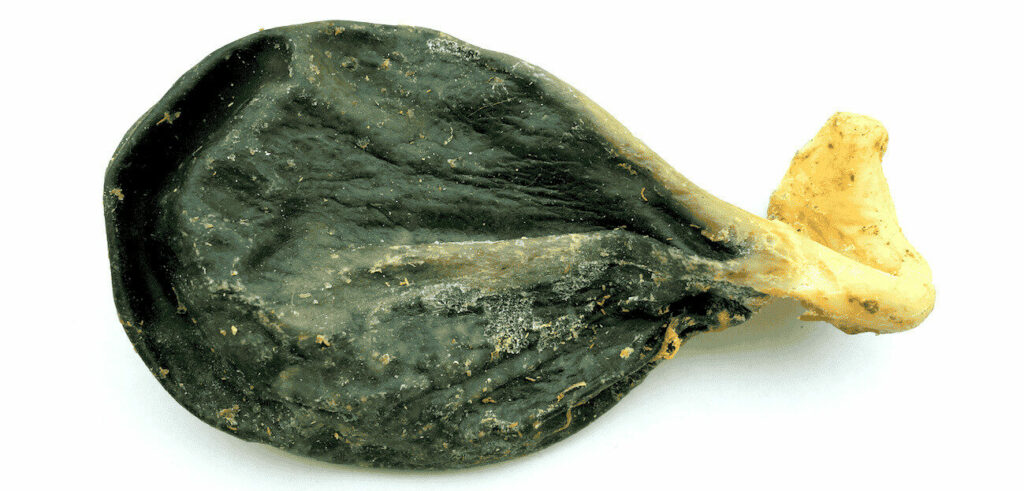 Dried Cow Gall Bladder as used in Tibetan Medicine in place of Bear Bile. (Adam, 2016)