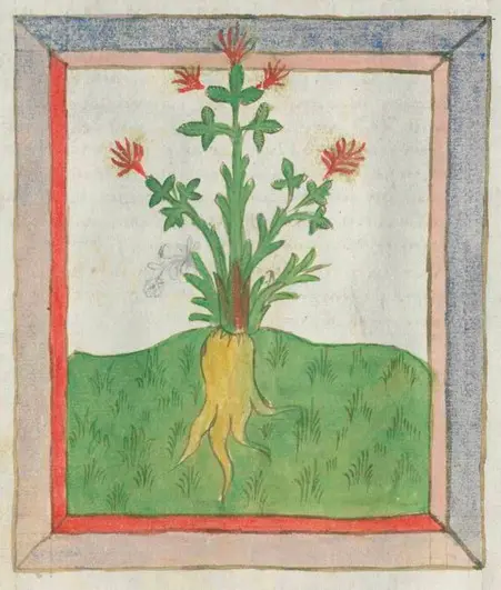 This wonderful Manuscript is housed at the Berlin State Library. It is available to view and download from the World Digital Library. It was written by Johannes Hartlieb (Physician to the Duke of Bavaria) in 1492 and is known as his Krauterbuch (Book of Herbs). It is extracted form Magenbergs Buch der Natur which was written 100 years earlier and was the first book of Natural History in German. The illustrations are highly stylized, and in some cases are quite wrong.