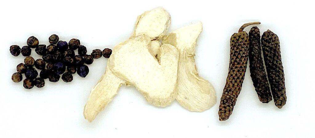 “Ginger, Black Pepper and Long Pepper remove phlegm and wind; among those