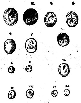“The umbilicus marinus, a fossil shell, which in form bore a great likeness to the human navel, was called “sea-bean” by sailors. Usually of a pale saffron hue, some specimens have a reddish or blackish tinge. In the sixteenth century it was believed to have astringent properties. We are also told that women used it as one of the ingredients of a cosmetic for whitening the complexion”.
