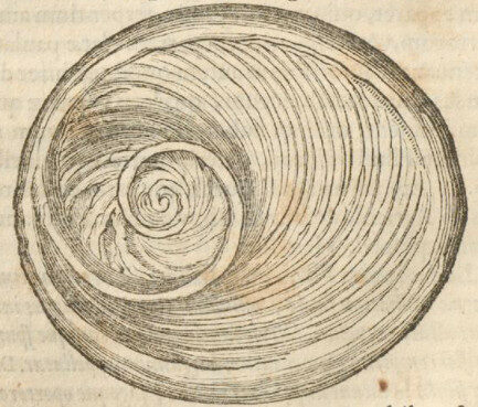 “Is the lid of a sea snail, which is called Concha venerea by Rondelet and is common enough in the Middle Kingdom. This lid is like a mussel with a flat back, about the size of a denier and probably wider. There are different sizes: sometimes it is almost completely round or somewhat elongated, hollowed out as thick as a spoon and has a shape almost like a navel. It is smooth and shiny and soft to the touch, golden and white on top and dark and reddish underneath; sometimes completely white. It grows out and hangs on the snail at one end. When this sea worm wants to take in its food, it removes the lid and lets it go. Once it has satiated itself, it draws it back towards itself and closes its shell so tightly that nothing can penetrate it. This lid or stone is found on the shore of the sea.